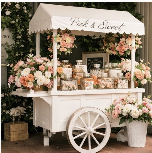 Decoración floral, mesas especiales y carritos temáticos listos para eventos, marcas y espacios comerciales. Una forma original de destacar y sorprender.